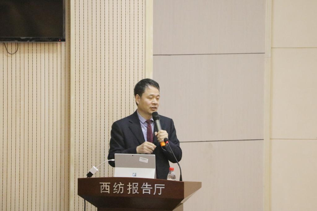 副校长李鹏飞教授作了题为“智能制造在纺织行业中的应用”学术报告