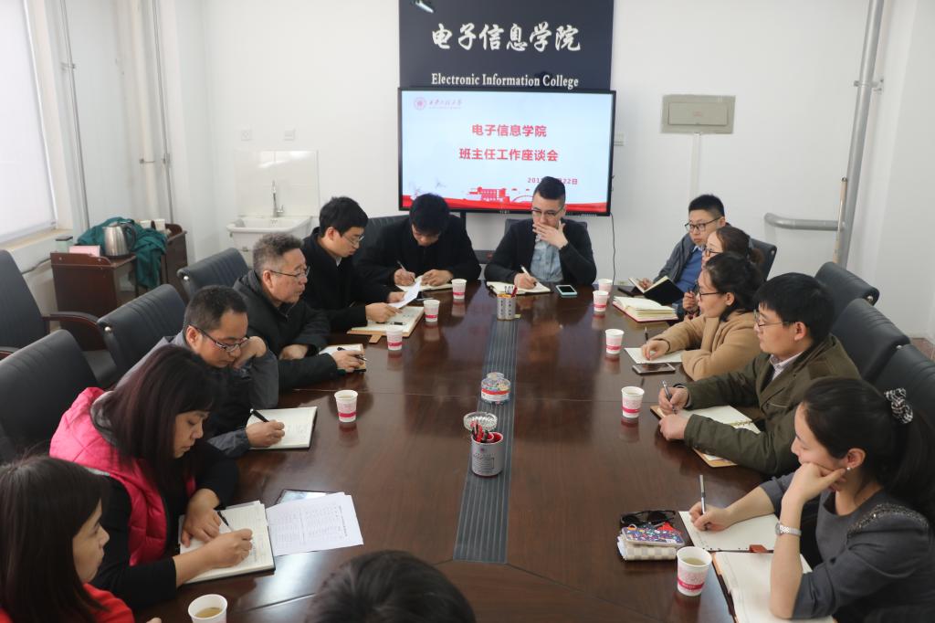 3月22日,电子信息学院在临潼校区电子信息楼414召开2018年度班主任工作会,电信学院党委书记杨恩科、党委副书记杨建军及学院16级、17级部分班主任代表20余人参加了本次会议,会议由电信学院学工办主任朱宇军主持。