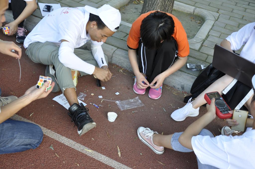 傍晚,科普宣传队员们在忙碌地为同学们准备着科普宣传用的道具。