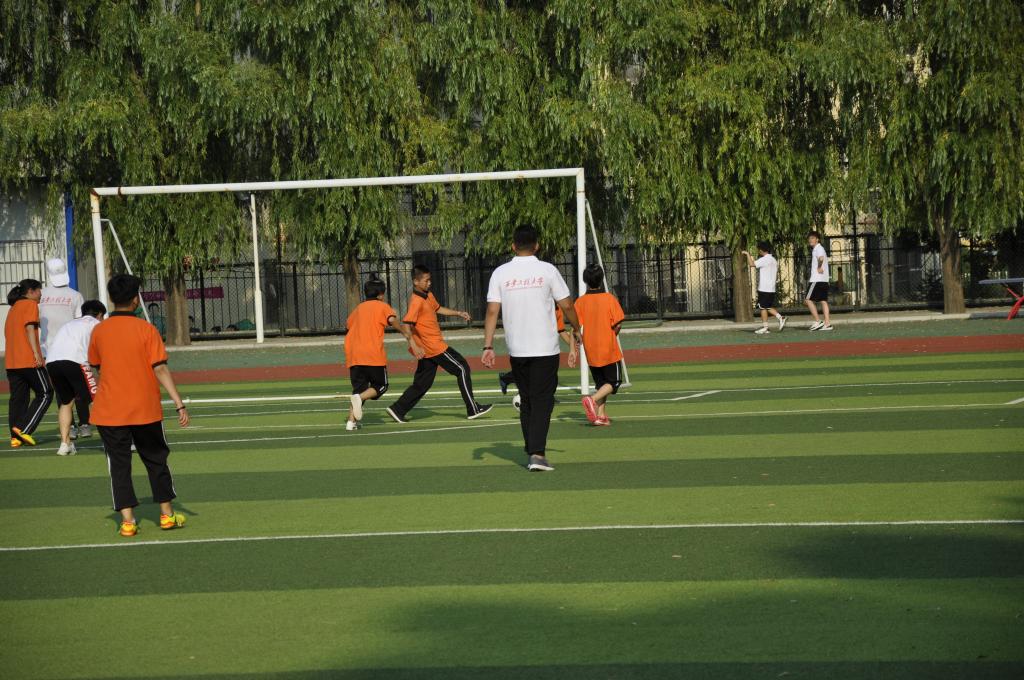 随后实践队员与同学们进行了足球联谊赛,球场上剑拔弩张,实践队员和同学们斗智斗勇,经过紧张激烈的比赛,黑家堡中学的同学们最终赢得了比赛。