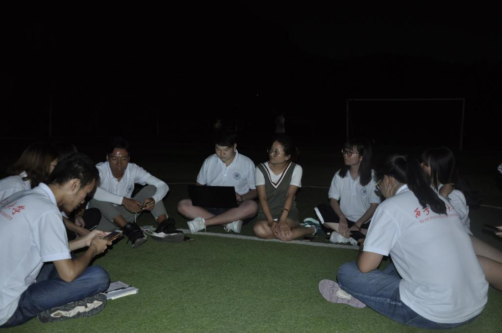 宣传队员的身影映照在皎洁的月光下,大家彼此交流经验和心得,期待着接下来的活动。明天精彩继续......