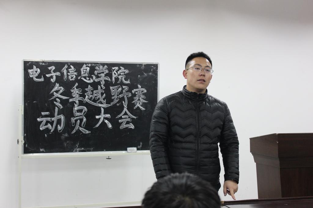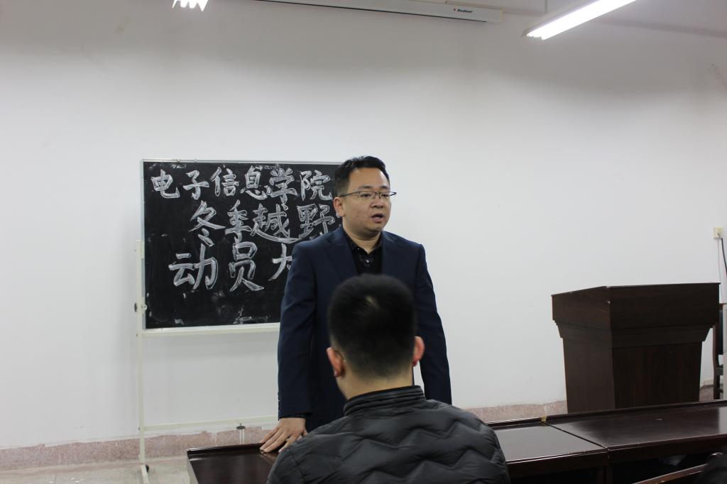 为激励我院参赛选手以更好的状态参与到冬季越野赛中,由电子信息学院于12月6日晚在电信楼419室举办2018年冬季越野赛动员大会。院党委副书记刘许、辅导员周梦宇以及院越野队队员和工作人员参加了本次大会。