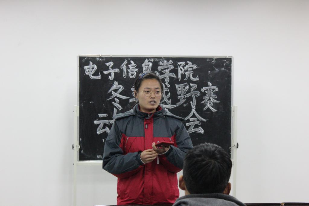 大会伊始,刘许对比赛注意事项进行了讲解,叮嘱同学们在赛前一定要做好热身准备,注意保暖;比赛过程中,同学们要调整好自己的战略战术;最后他强调了一定要注意明天的饮食,充分休息。接着,周梦宇老师表达了长期以来坚持训练的参赛人员坚韧不拔的精神的肯定,并且叮嘱同学们在明天的比赛中要量力而为,以保证自身安全为前提,发挥正常训练水平,尽全力取得好成绩。通过两位老师的讲话,让同学们感受到了学院对于本次冬季越野赛的重视,以及对运动员的关心,极大的鼓舞了同学们的信心。