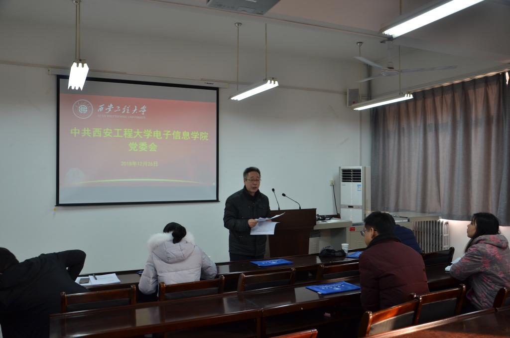 井浩对电子信息学院一直以来的工作和取得的成绩表示了高度的肯定,就学科建设、实践教学、队伍建设、科研团队建设等方面进行了深入的交流,同时对电子信息学院提出了三点期望:一是,务必要继续发挥党建在学院建设过程中的引领作用,党建引领一切,将党建工作贯彻到学院师资队伍建设、学科建设、人才培养、专业建设等各个环节之中;二是,继续加强实践教学环节在人才培养工作中的地位和作用,引导学生参与科技竞赛,尤其是电子设计大赛,要充分认识到电子设计大赛高度和重要性;三是,结合学校行业大背景,凝练学科,聚焦研究方向,做好科研团队建设,发挥团队在学科建设和科研成果产出的合力效应,最终实现大发展。最后,井浩强调,要始终不忘党风廉政建设,牢记党员身份,坚守党纪、道德底线。