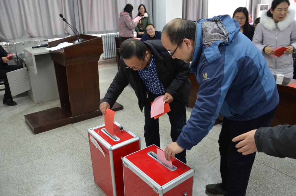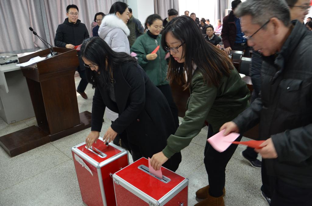 大会在庄严的国歌声中拉开帷幕。学院上届工会主席王晓华代表学院上届工会做了工作报告。刘许宣读了《分工会委员会委员候选人批复》及《关于我校分工会换届及第八届“双代会”代表选举的安排意见》。大会表决朱宇军为监票人,刘妍萍、刘风萍、曹智宇、苏泽斌、武卫强、卢嫚等6人为计票人,在严格执行的选举程序下,大会以无记名投票方式差额选举刘许、刘成涛、周梦宇、段佳雷、郭家祯等5人为电子信息学院新一届工会委员,选举马丽萍、卫建华、刘毅力、朱永民、李云红、李彦斌、邵文权、杨恩科、杨幸芳、张凯兵、张蕾、景军锋等12人为电子信息学院“双代会”代表。