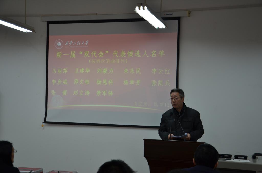12月26日,电子信息学院在临潼校区电子信息楼419召开学院工会委员会换届及“双代会”代表选举大会,电子信息学院党委书记杨恩科、执行院长景军锋、副书记刘许、副院长李云红、张蕾及学院全体教职工参加了本次大会,大会由杨恩科主持。