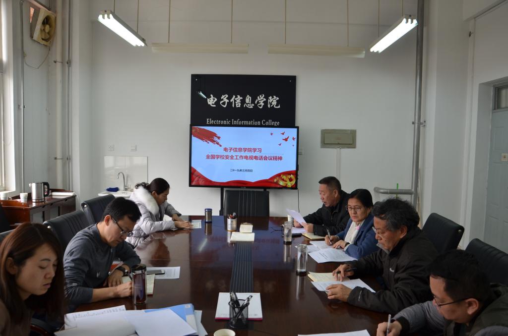 3月4日下午,电子信息学院召开校园安全专题会议,党委书记杨恩科,院长赵广社,执行院长景军锋,副院长李云红、张蕾,党委副书记刘许以及各系部实验室相关负责人参会,会议由书记杨恩科主持。