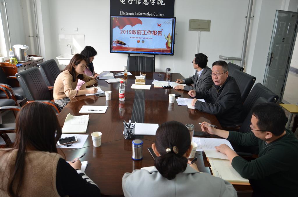 电子信息学院党委紧跟全国“两会”步伐,于3月13日上午,组织学院党委理论中心组全体成员在414会议室集体学习2019年《政府工作报告》,会议由学院党委书记杨恩科主持。