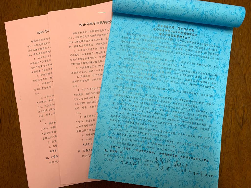 会上,首先杨恩科依次传达了校2019年工作部署会、全面从严治党工作会和意识形态暨稳定安全警示教育会的会议精神,并结合2019年学校和学院中心工作对2019年学院党委工作和教职工理论学习进行了安排和部署。接着学院党委书记杨恩科、执行院长景军锋分别与学院系(部)、办公室主任及党支部书记现场签订了《电子信息学院2019年校园稳定安全综合治理目标管理责任书》和《2019年电子信息学院党风廉政建设责任书》。最后杨恩科对两项责任书签订的必要性和具体内容进行了详细说明。