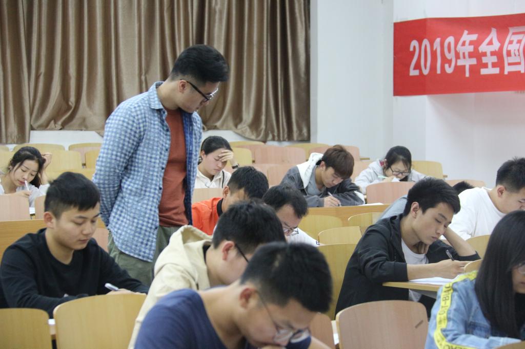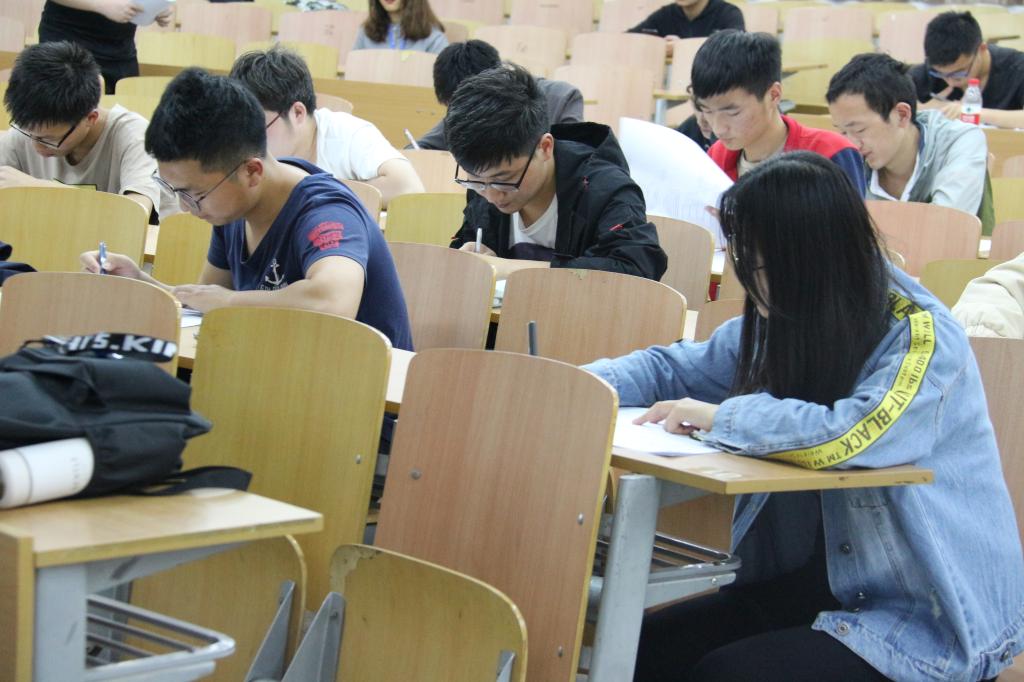 考试开始之前,康科峰老师告诉大家本次考试试题涉及内容范围较广泛,包含多门专业基础课,非常考验参赛者扎实的专业基础知识。“万丈高楼平地起”,老师希望通过此次比赛大家在日后能更加重视自己的理论基础知识学习,不仅是在比赛中,在平时的上课学习中也要掌握好基础知识,同时祝愿同学们在本次考试中能取得优异成绩。杨松然老师也莅临考试现场,巡视同学们的答题情况,并为大家加油打气,希望同学们发挥出自己的水平,展示出自己的实力。随后大家便埋笔于试卷之中。在考试过程中,同学们严格遵守考场纪律,认真答写试卷,监考的工作人员也恪尽职守,不时地在考场巡转,为大家更替新的草稿纸,使整场考试能够井然有序的进行。