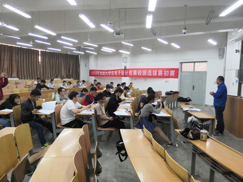 为了进一步营造浓厚的学习风气和学术科技氛围,丰富同学们的课余文化生活,电子信息学院于5月9日晚19:00在临潼校区B-233教室举办了2019年全国大学生电子设计竞赛校园选拔赛初赛,共计100余名学生参加了本次比赛。