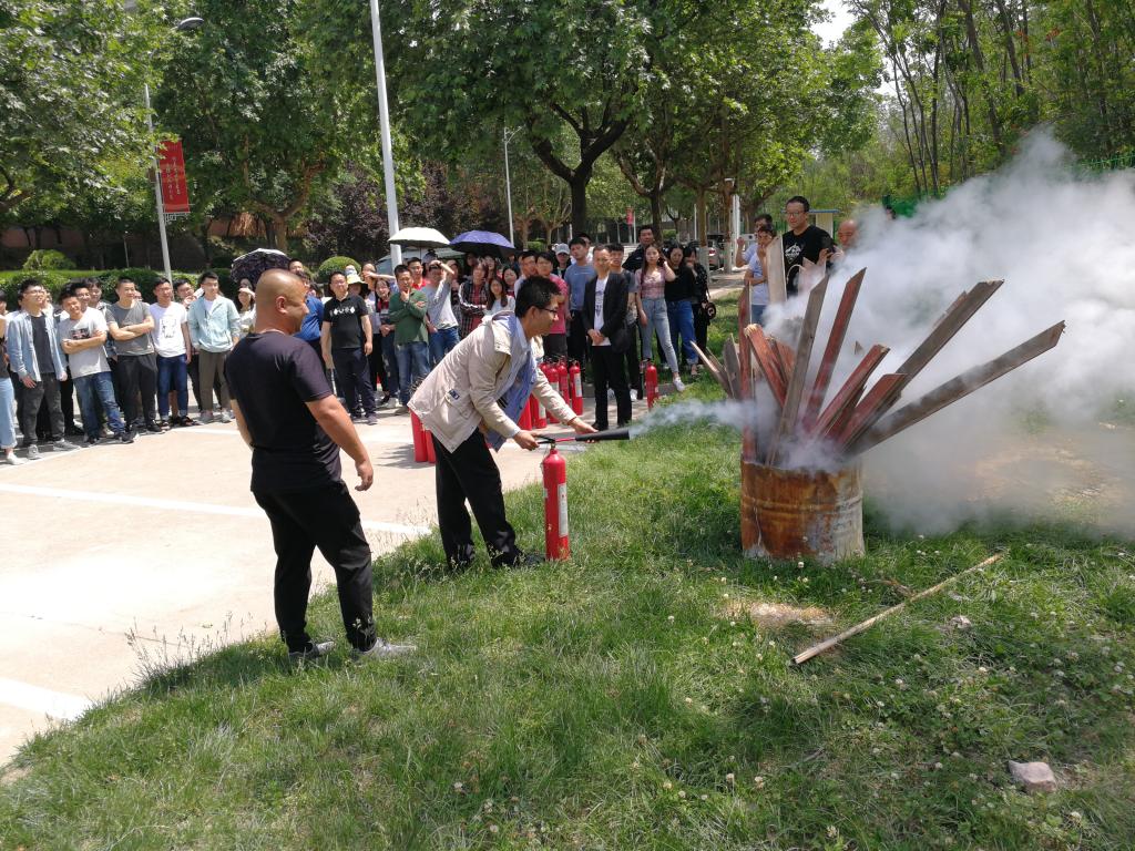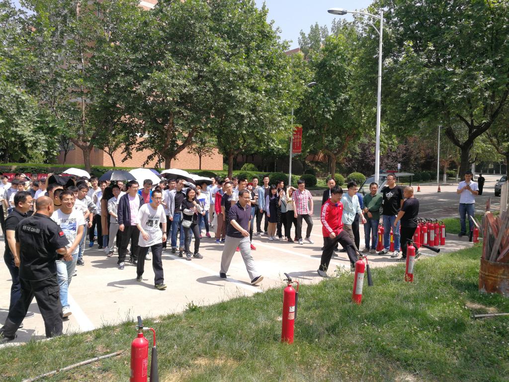 随后,校保卫处王洪舟向全体研究生讲解了灭火器构造及原理,通过实际操作说明了灭火器操作方法与要点。因电信学院实验室及研究生工作室主要涉及实验设备、涉电仪器及大量用电设施,故本次演练有针对性的选择二氧化碳灭火器。最后,所有参与活动的研究生分为5组,每人都进行了灭火器实际操作。