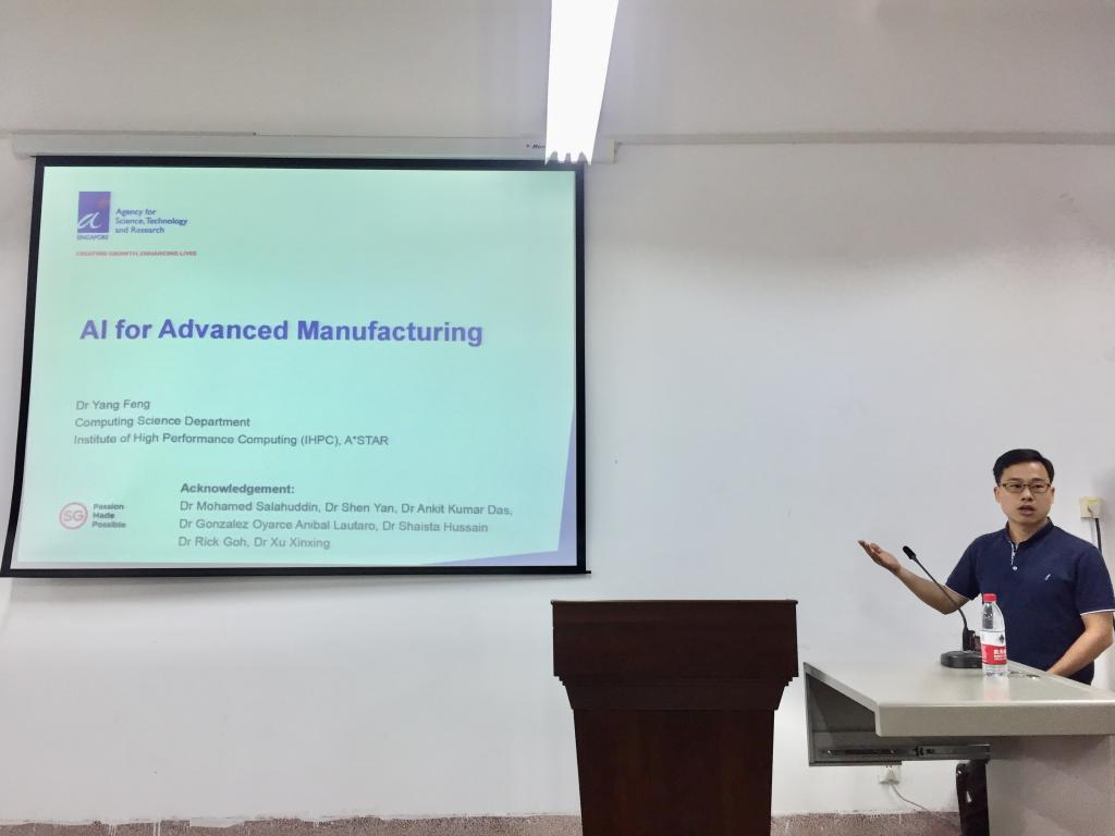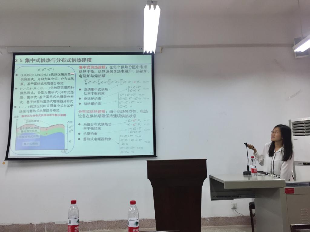 随后,章为川以《图像兴趣点检测及其应用》为题向大家介绍了原有角点检测方式存在的缺陷,指出直角角点的检测经旋转后检测率会下降,提出了一种新的角点检测方式,将检测性能提高了15%以上。吕家君就《含灵活性资源的电热综合能源系统优化调度研究》,以京津唐地区的供热方案作为例子,具体讲述了该地区灵活性供热资源的配置,对于求解供热约束模型提出了一种新的算法,大大降低了函数量使模型的计算速度快4~13倍。杨锋以《AI for AdvancedManufacturing》为题介绍了AI目前的发展状况以及实际应用的场景。