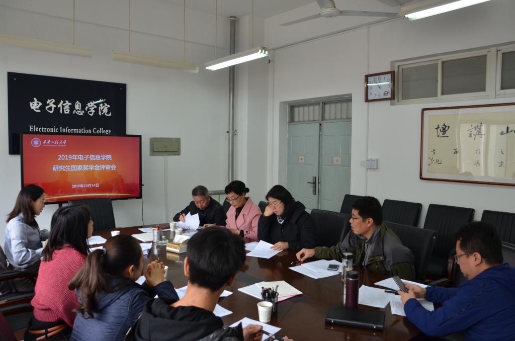 10月14日,电子信息学院在电信楼414会议室举行2019年研究生国家奖学金评审会。电子信息学院2019年研究生国家奖学金评审委员会全体成员参加会议。会议由学院党委书记杨恩科主持。