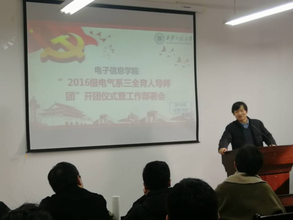 12月18日下午,在电子信息学院419室召开了2016级电气系三全育人导师团开团仪式暨工作部署会。电气系导师团7名导师、部分学生代表共30余人参会。本次会议由导师团执行团长邵文权主持召开。