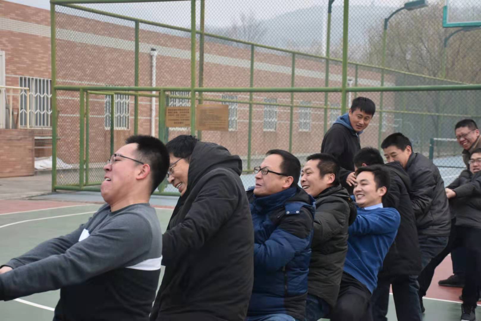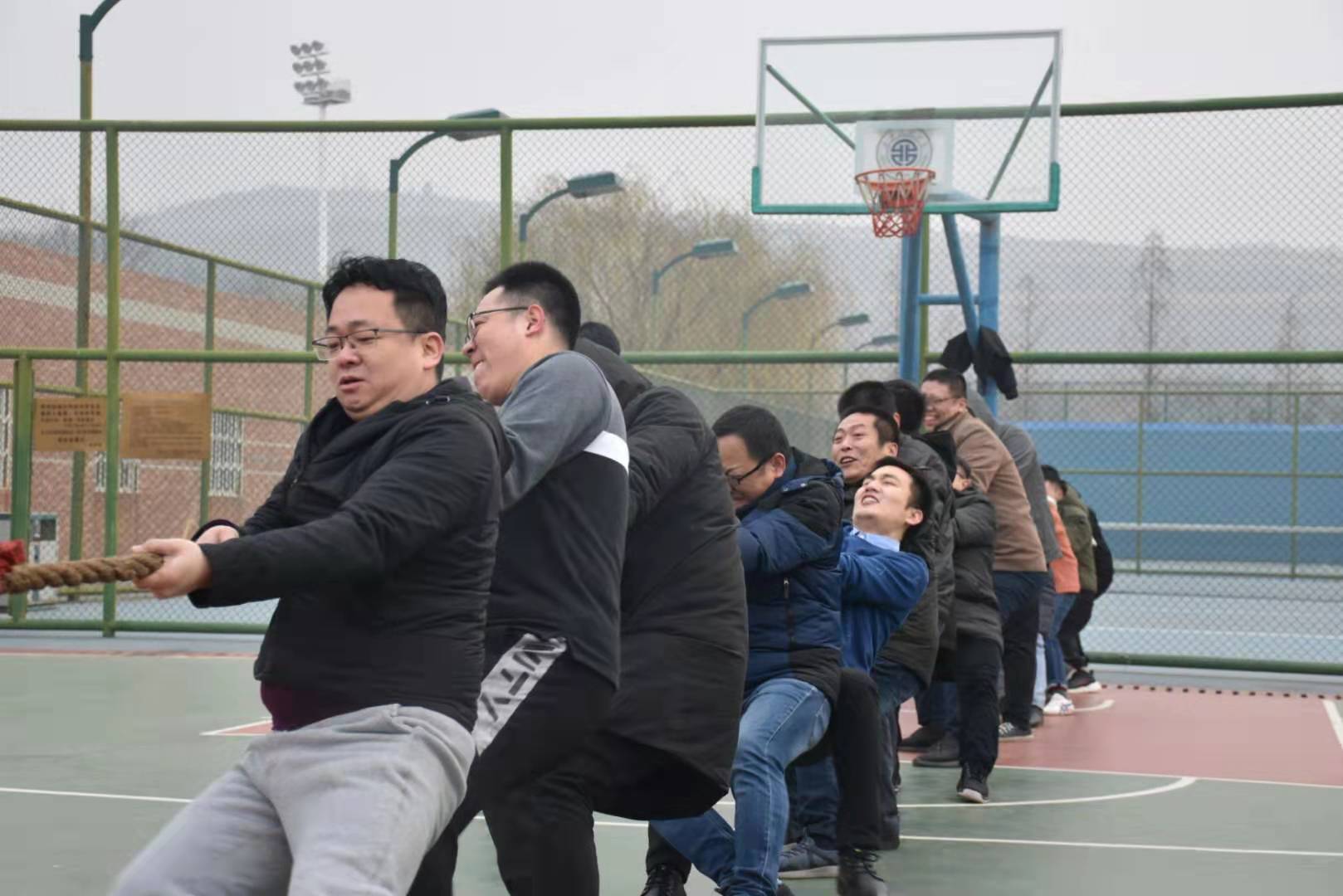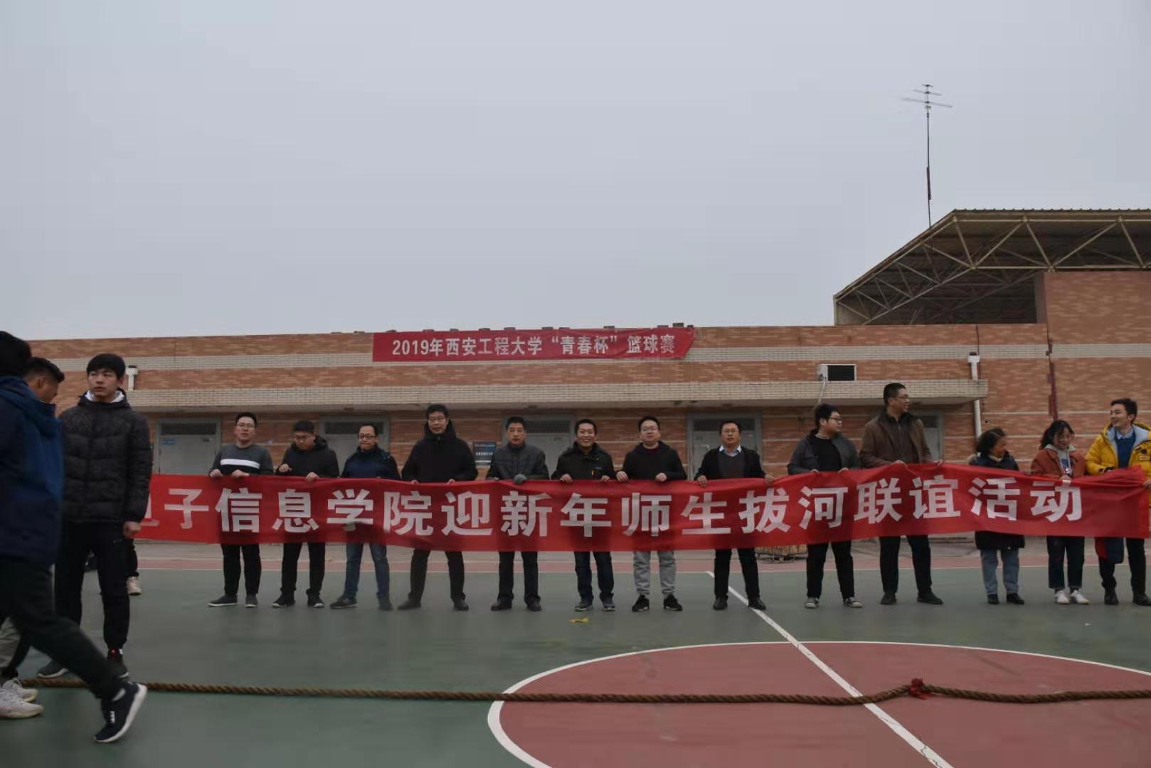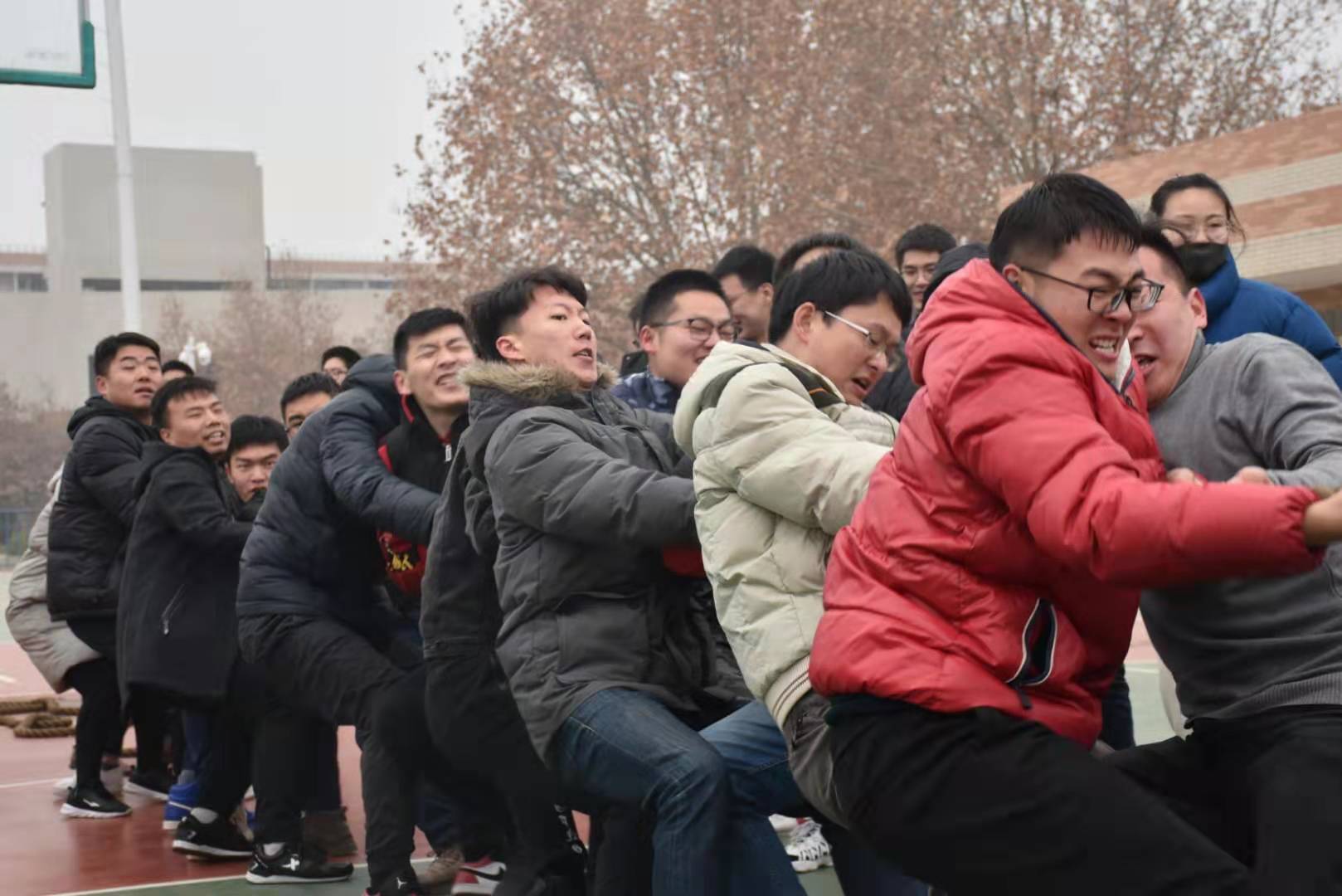 为丰富学生课外活动,增强体育锻炼的意识,增强师生之间的相互联系,进一步促进全院师生德智体全面发展,2019年12月23日,电子信息学院全体师生在校篮球场举行了“鼎拔赛场情飞扬,师生合力创辉煌”拔河比赛。本次大赛共有六支队伍,分别为:大一组、大二组、大三组、大四组、研究生组和教工组,全院师生纷纷以极大的热情参与到此次活动中。