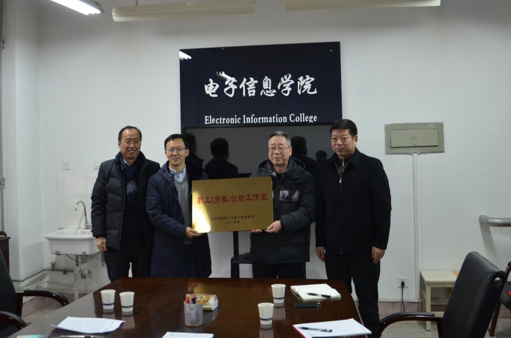 12月25日,陕西省教科文卫体工会主席陈建树一行赴我校电子信息学院,为我校景军锋教授的劳模创新工作室揭牌。校党委副书记赵小峰、副校长朱永民、校工会常务副主席马莉萍、副主席仝燕、办公室主任刘小钊、电信学院党委书记杨恩科、执行院长景军锋、院工会主席刘许参加了本次揭牌仪式,仪式由赵小峰主持。