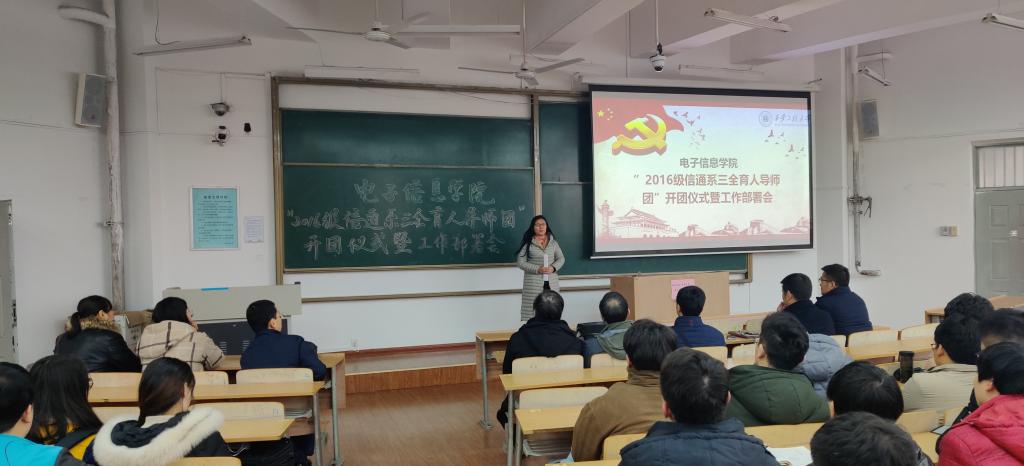 为扎实推进学院“三全育人导师团”工作,按照学院安排部署,12月25日下午,2016级信通系三全育人导师团召开了开团仪式暨工作部署会。导师团名誉团长朱永民副校长等导师团9名导师、2016级信通系全体学生200余人参加了大会。本次会议由导师团执行团长李云红主持召开。
