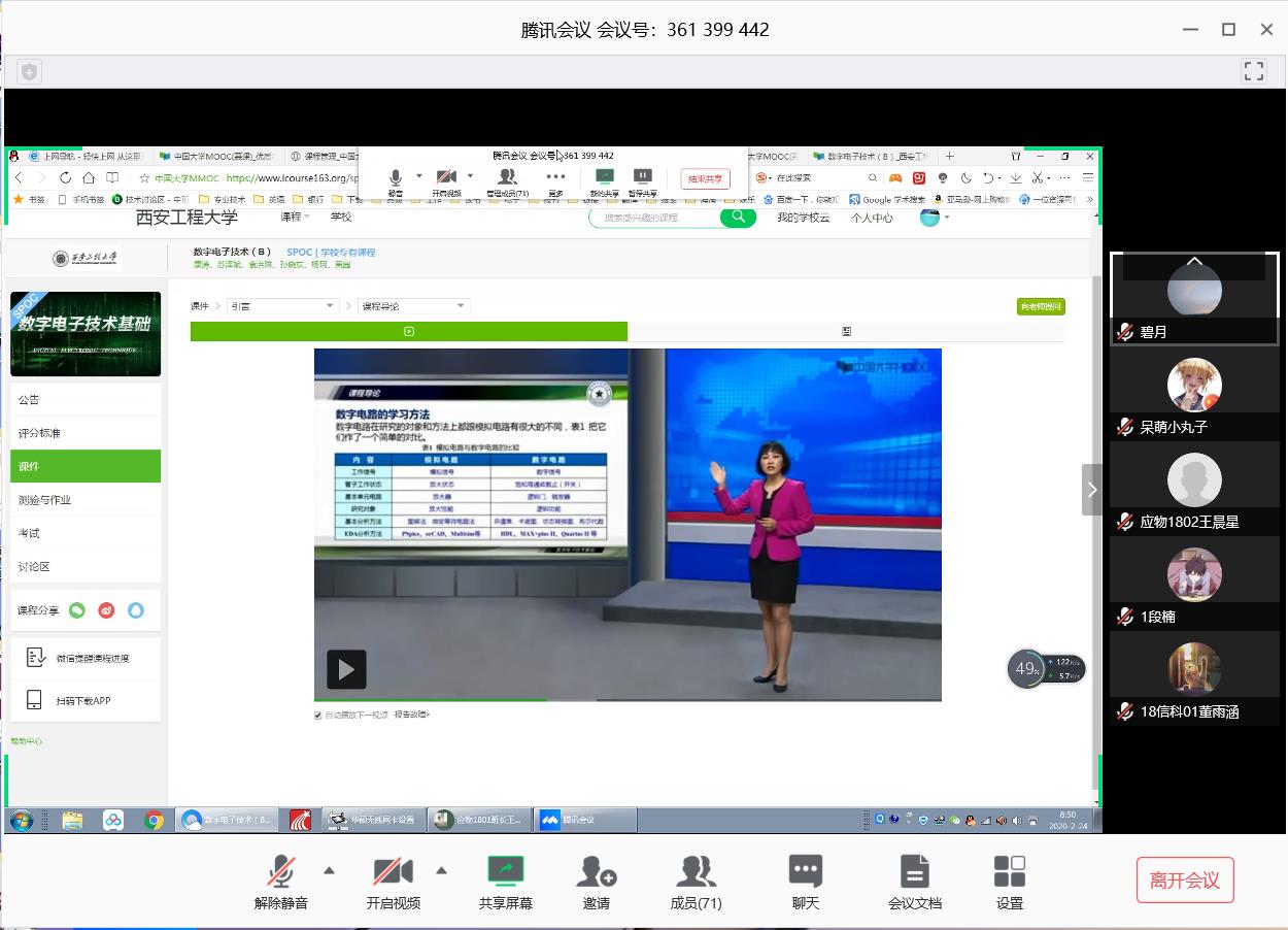 开课第一天,学院督导组集中线上抽查了部分课程,有的老师授课情况良好,有的老师存在网络不稳定的情况。随后督导组利用腾讯会议平台召开会议,对第一天网络开课情况进行了总结。全程网络授课与答疑,对于教师来说,还是一种新的形式,在平台的选择、网络的稳定性、网络答疑形式上,还有很多需要老师们不断摸索,不断总结经验不断完善。当天,学院将查课结果反馈给全体教师,并对电信学院教师的网络授课提出了更高要求,建议老师们根据实际情况酌情选择合适的平台;并要求老师们针对网络不稳定,梳理总结线上教学可能出现的突发问题,做好应急预案,确保网络教学质量,实现线上教学与线下课堂教学的实质等效,鼓励教师进行教育教学改革。