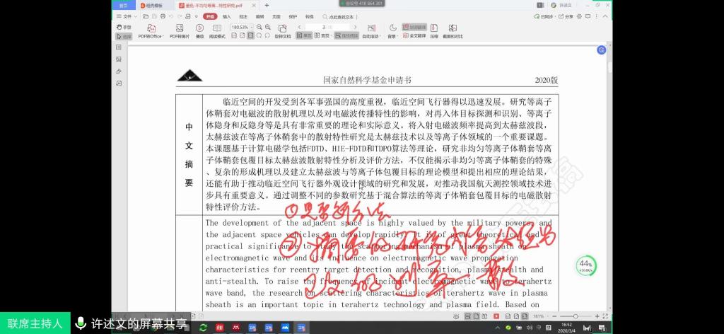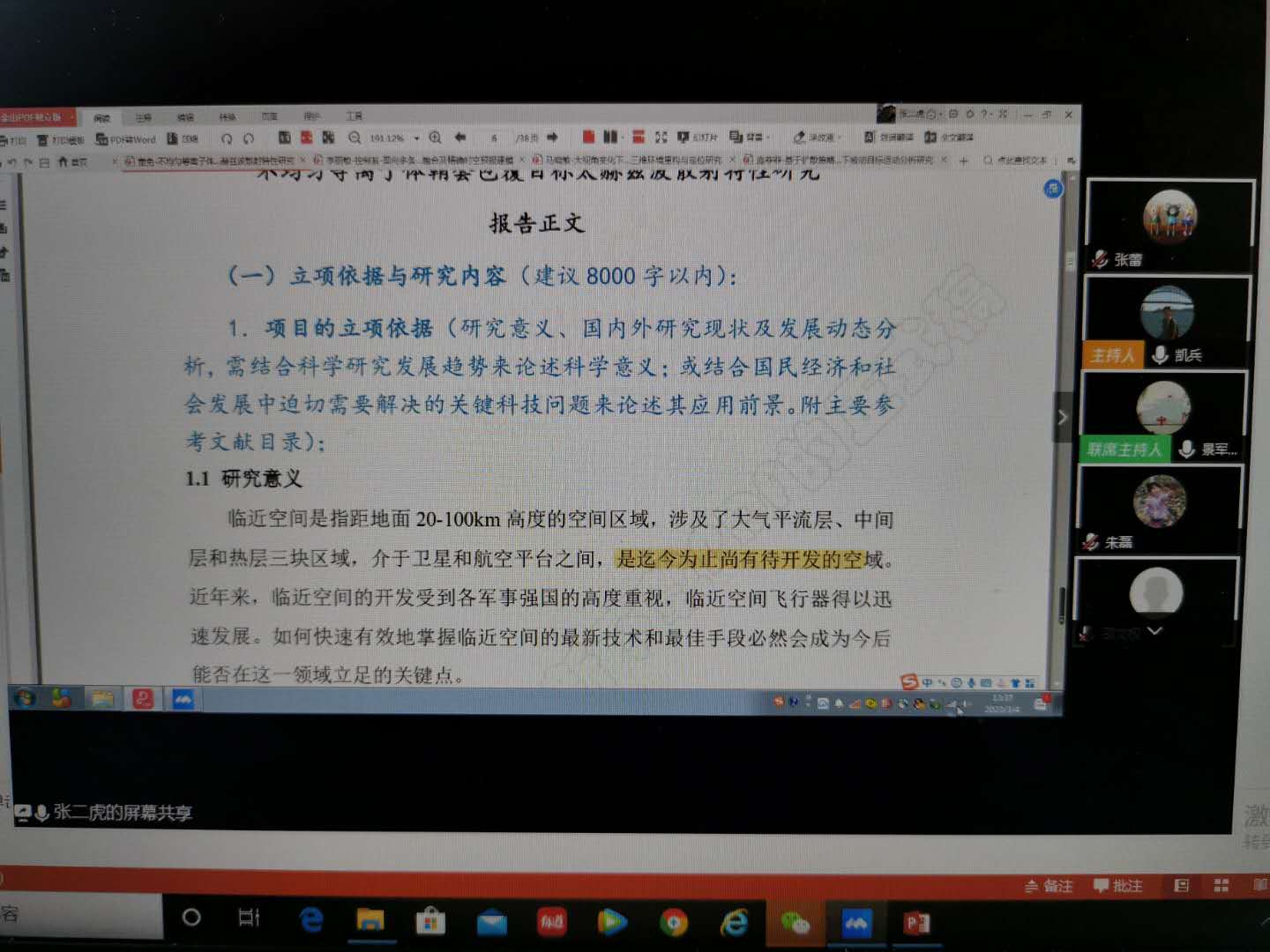 3月4日下午,电子信息学院本年度第一次国家自然科学基金专家评审会顺利召开,因防疫工作的需要,本次评审会采用在线网络的评审方式。本次特邀西安电子科技大学刘红侠教授、许述文教授,西安理工大学张二虎教授作为评审专家,对学院前期送给专家进行函评的六份基金申请书进行评价和指导。我校科技处处长朱耀麟教授、电子信息学院执行院长景军锋教授、副院长张蕾副教授及学院拟申报基金的四十余名教师参加了本次评审会,会议由院长助理张凯兵教授主持。