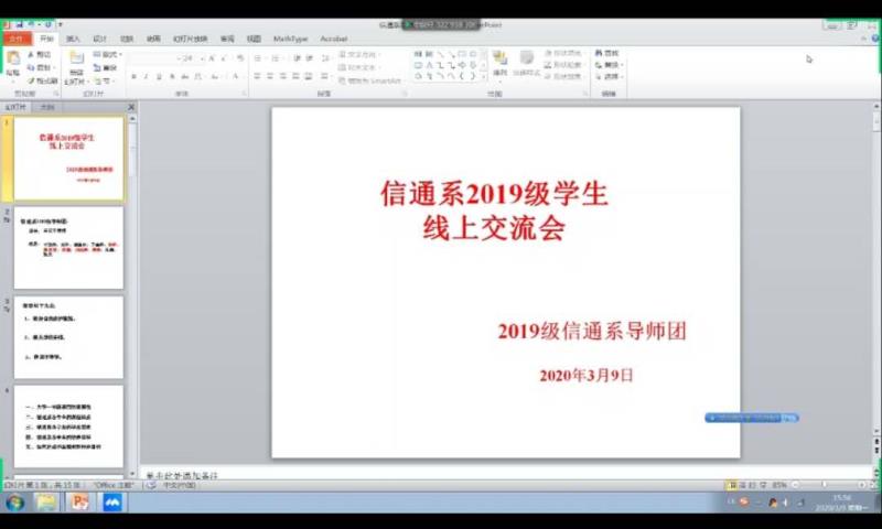 最后,导师团秘书张天就健康打卡、流动报备、学校各方面的要求对同学们进行讲解,并希望同学们虽然在家学习仍要脚踏实地、认真学习、不断进步。