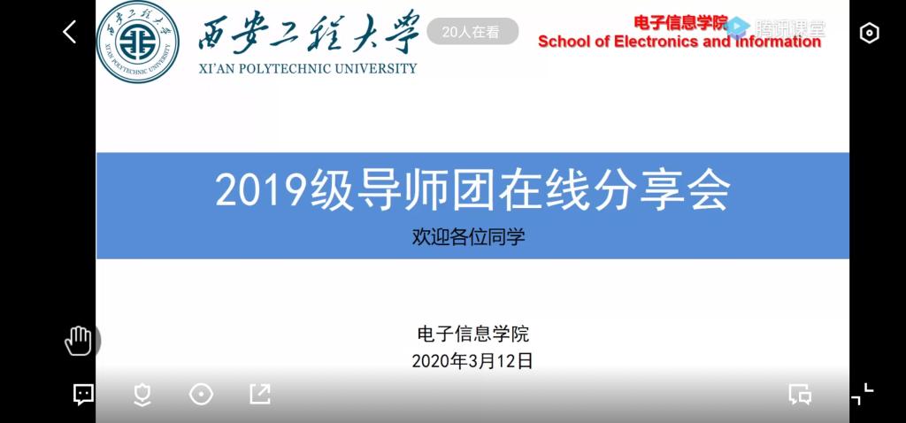 庚子年初,一场突如其来的肺炎疫情席卷全国,这是一个不同寻常的春节,全国上下,众志成城、共抗疫情。电子信息学院2019级电气系三全育人导师团积极响应疫情防控期间部署安排,3月12日,2019级电气系导师团师生齐聚“云课堂”,由导师团成员赵隆以扫清迷茫为起点,树立目标为导向,明晰做法为主要内容开展了一场“特殊”的线上分享会,参加本次分享会的主要有2019级电气系导师团执行团长马丽萍、成员曹雯、秘书张天。