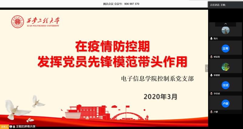 3月20日,全国样板党支部、电子信息学院控制系党支部召开主题为“在疫情防控期间发挥党员先锋模范带头作用”的支部党员大会。