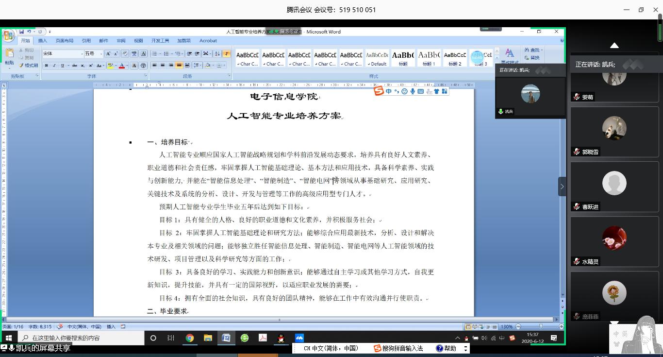 为了扎实推进2020版本科培养方案修订工作,电子信息学院于6月12日下午,召开2020版本科专业培养方案修订线上论证会,学院邀请西安理工大学张二虎教授、段建东教授、空军工程大学刘昌云教授、西安曼海特工业技术有限公司曹跃进高级工程师、国网陕西省电力公司电力科学研究院王建波高级工程师、杭州感想科技有限公司刘屹副总经理作为论证专家。校外专家/企业专家、教学副院长、各系部主任、各专业负责人、实验中心主任、专业骨干教师、教学秘书参加了线上会议。会议由教学副院长李云红主持。