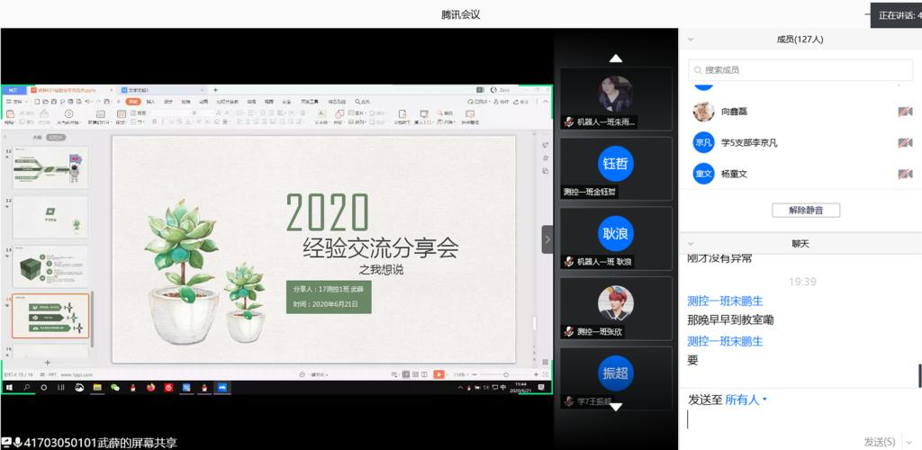 为了进一步贯彻落实资助育人的工作实效,满足学生个性化需求,实现学生全面发展,电子信息学院于2020年6月20-21日两天在腾讯会议举行了“榜样的力量”国家奖学金获奖学生经验分享会,参加本次活动的有资助辅导员周梦宇、2019级辅导员张天、2018-2019年度国家奖学金获奖学生张燕、武薛、陈恬静、赵明莉四名同学以及18级、19级相关专业学生,经验分享会由张天主持。