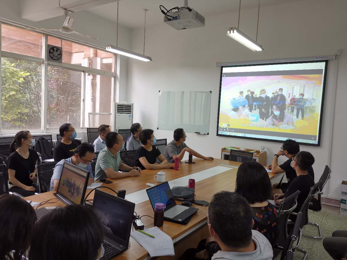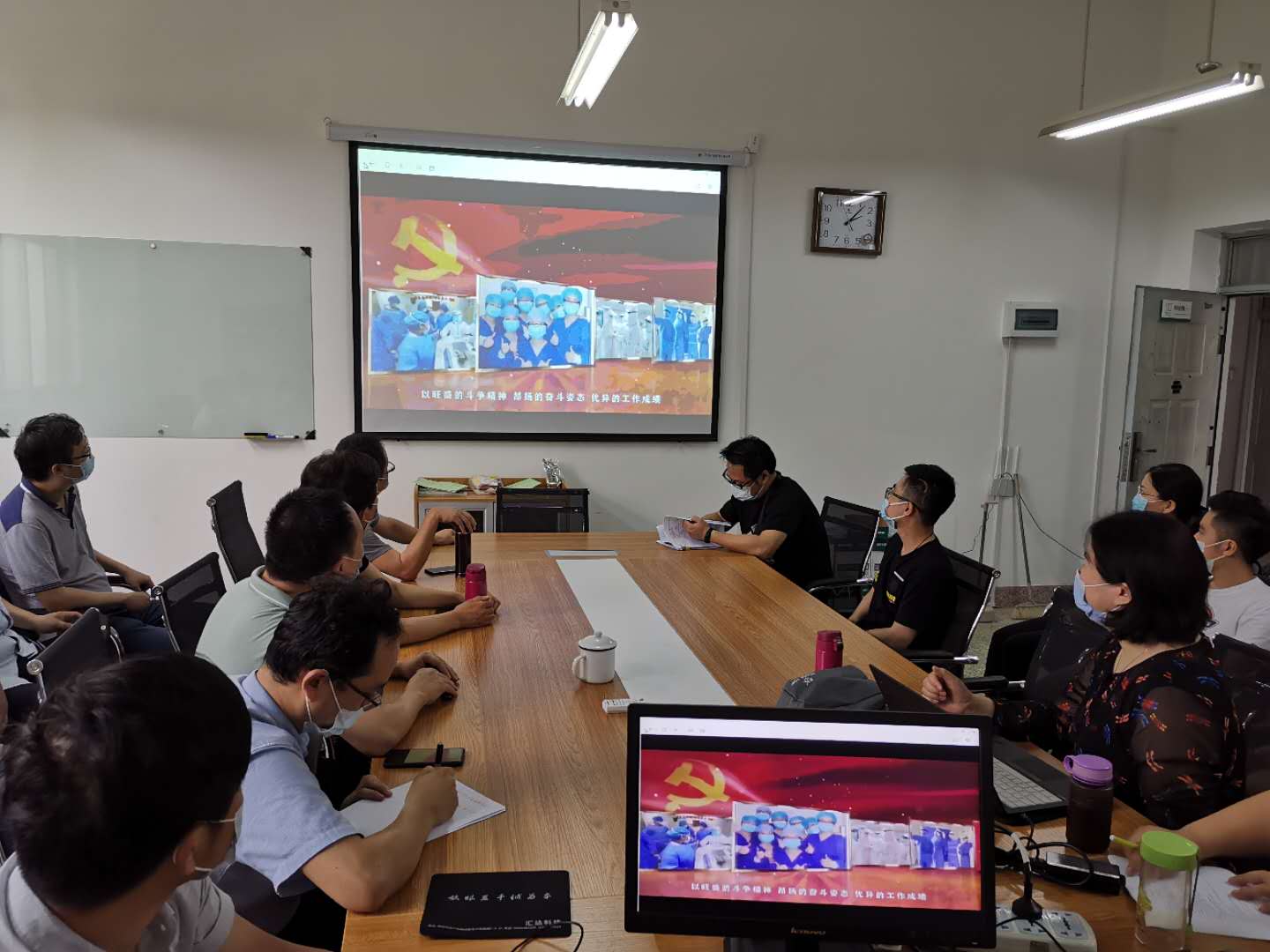 在中国共产党99岁生日当天,2020年7月1日下午2点,电气系党支部全体教工在临潼电信楼102教研室同上云端微党课“党旗飘扬,筑牢红色防火墙”—— “七一”专题高校党组织战“疫”示范微党课。