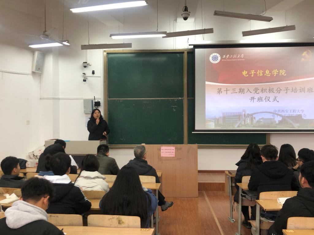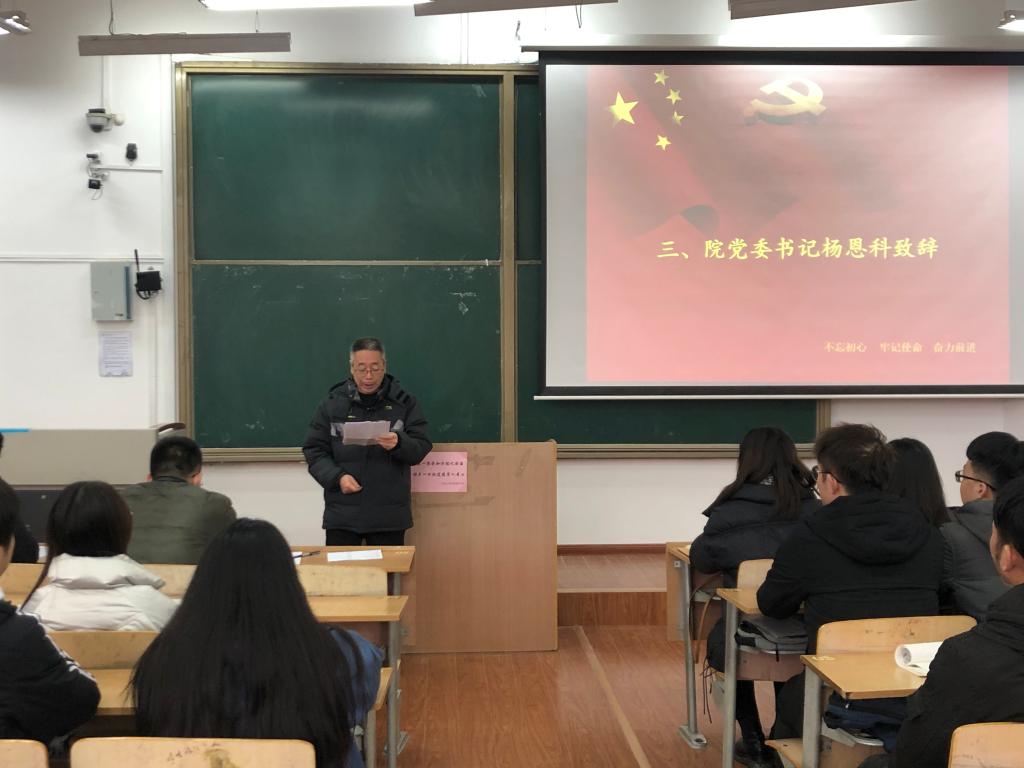 为学习贯彻习近平新时代中国特色社会主义思想和党的十九大精神,贯彻落实《中国共产党发展党员工作细则》,进一步提高入党积极分子的思想政治素质和政治理论水平,明确入党目的,端正入党动机,2020年12月1日中午12点,电子信息学院党委在B-135教室举行了学院第十三期入党积极分子培训班开班典礼。院党委书记杨恩科、各党支部书记及86名入党积极分子参加了此次典礼,大会由学院学工办主任朱宇军主持。