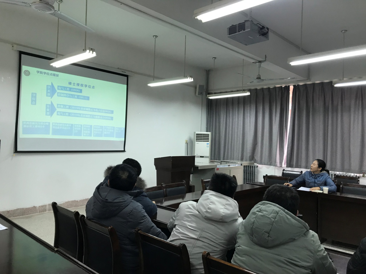 张蕾副院长代表学院对周小计教授的到来表示热烈欢迎。随后从学位点概况、研究生培养方向、研究生招生等方面介绍了我院硕士研究生培养的基本情况。同时提出我院研究生招生选拔体制、研究生培养过程、研究生指导教师队伍建设等方面存在问题。