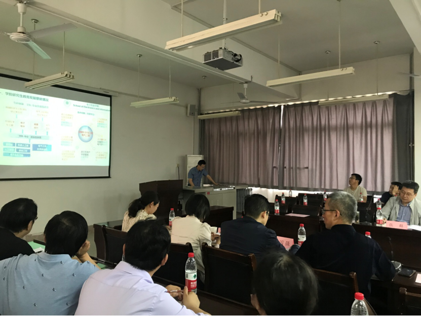 现场与会专家对我院研究生导师队伍结构、学科发展情况、研究生质量保障措施等方面进行了细致的问询,并给出了具体的建议。随后,专家组实地参观电子信息学院“机器视觉与智能检测研究所”、“机器人与智能装备技术研究所”、“智能信息处理与信息系统研究所”、“电力自动化与新能源技术研究所”、“电力安全评价与智能装备研究所”五个研究所所属研究生工作室和相关学科平台、学术研讨室,并与学生进行了深入的访谈。