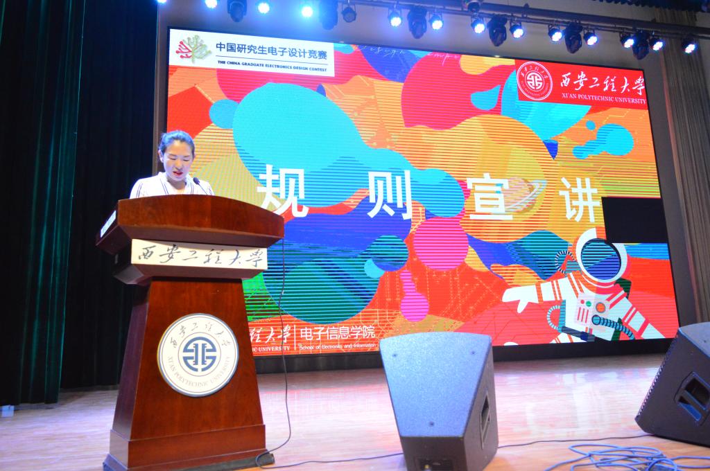 随后,电信学院副院长张蕾副教授介绍了评审规则。她首先对各位评委、来宾和参赛选手的到来表示欢迎,然后从参赛类型、评审规则及奖项设置等方面向大家详细讲解了本次比赛的比赛规则。
