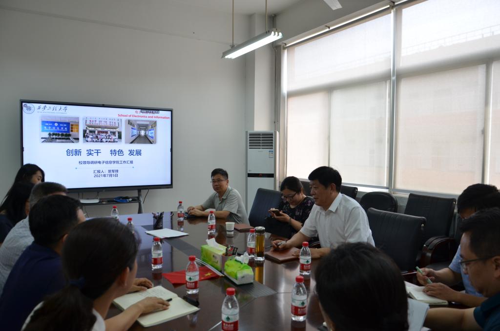 2021年7月5日下午2:00,校长王海燕到电子信息学院调研学科建设和“十四五”规划工作。调研工作会在电信楼414会议室进行,电信学院党政班子全体人员、学科主要负责人参加了调研工作会。