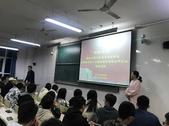 电子信息学院受邀于10月13日赴西安航空学院阎良校区进行招生宣传。此次宣讲活动得到了西安航空学院师生的大力支持,西安航空学院电子工程学院副书记郝杰、学院辅导员、电子信息学院副院长张蕾、研究生秘书行露以及有考研意向的三、四年级本科学生共100余人参会。