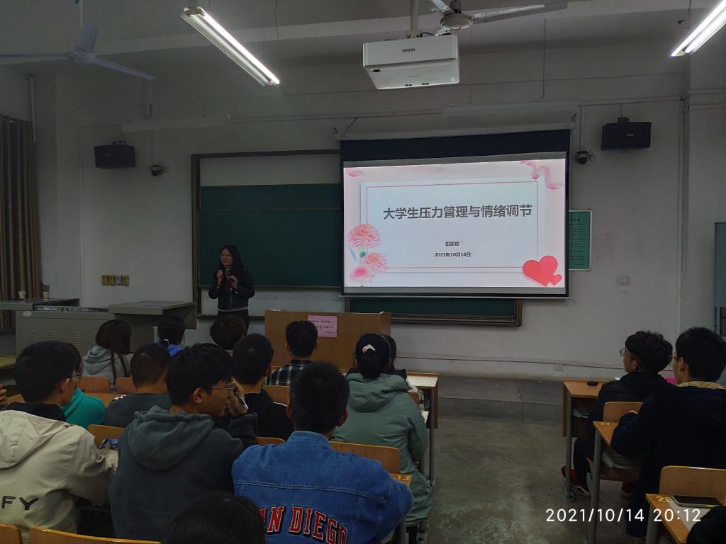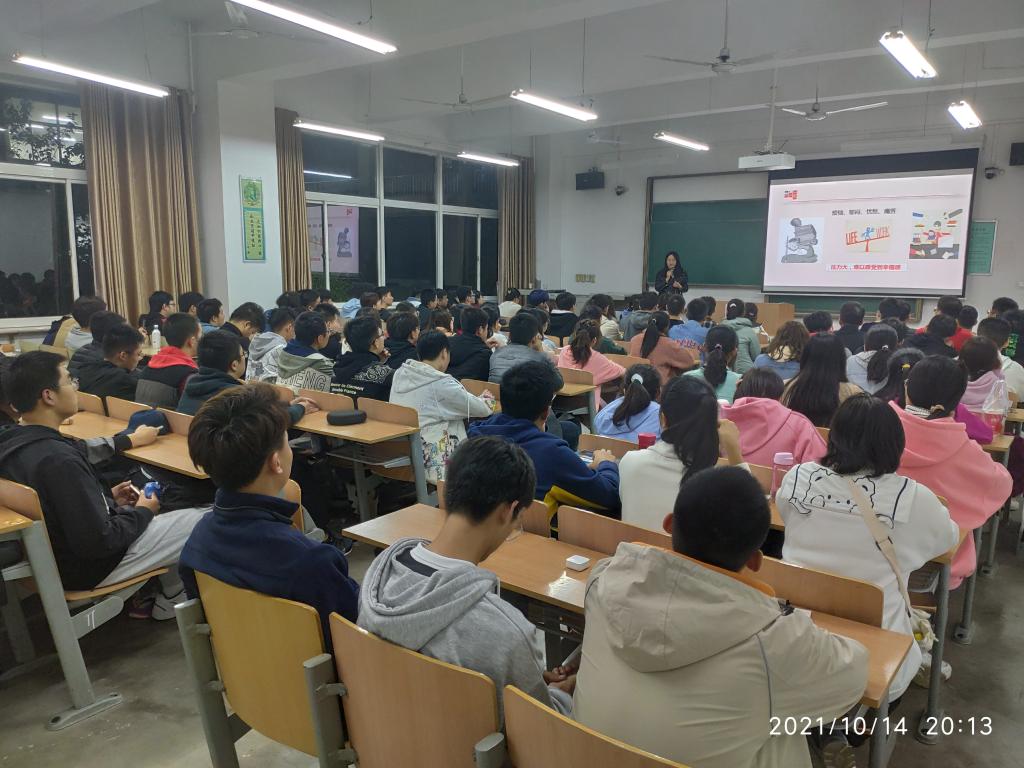 10月14日,电子信息学院特邀校心理中心教师田珍珍在临潼校区教学楼A-124开展“大学生压力管理与情绪调节”为主题的心理健康教育讲座,电信学院2021级辅导员曹智宇、全体班级心理委员、宿舍长共计100人参加了本次讲座。