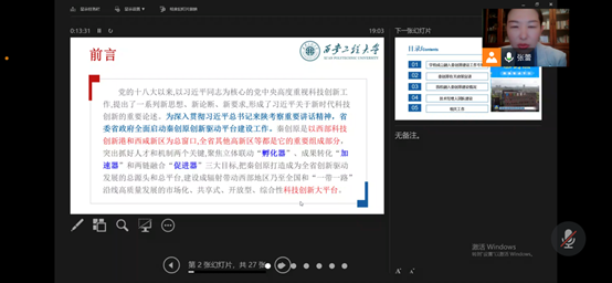为响应学校关于推进秦创原工作的部署和建设,进一步推动电子信息学院“两链融合”工作,11月10日晚19点,学院召开秦创原工作推进线上会议,院长景军锋,副院长张蕾、李云红,各研究所负责人及科研教师共计35人参加会议,会议由科研院长张蕾主持。