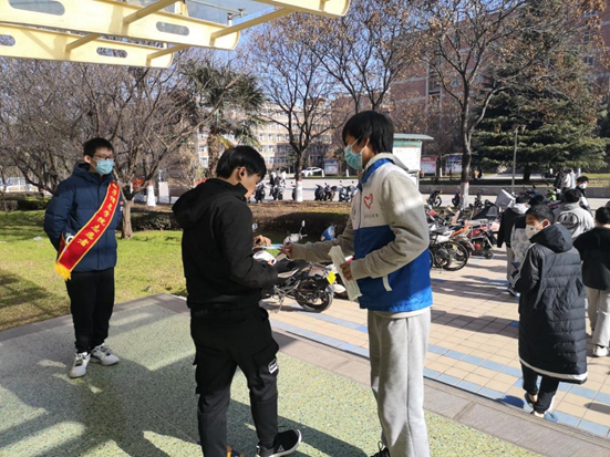 青年志愿者协助老师检查出入校门人员请假信息及学生行程卡
