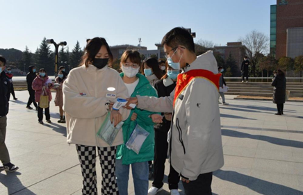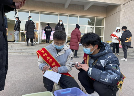 学院党委书记杨恩科带头冲锋第一线,引导学生有序检测