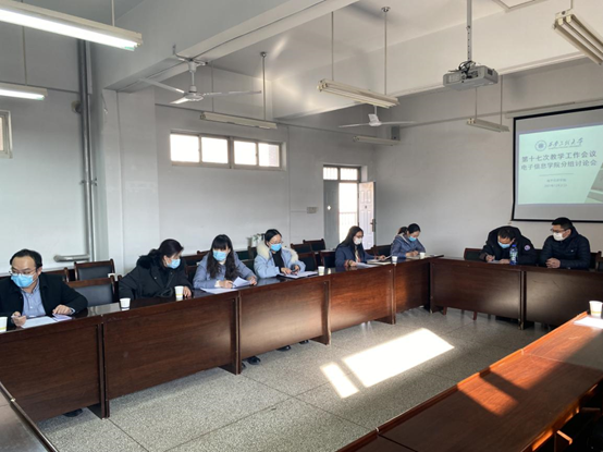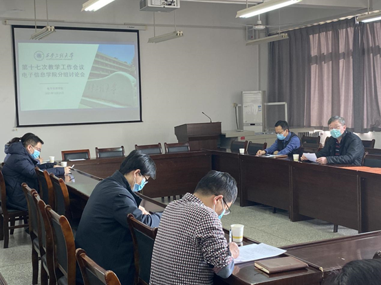 2021年12月21日下午,电子信息学院在电信楼学术报告厅召开第十七次教育教学工作会第一次分组讨论会。会议依据学校“深化教育教学综合改革,推进‘十四五’人才培养规划”的主题展开讨论。副校长戴鸿、电信学院党政领导、各系部正副主任、专业负责人、实验室负责人、教学秘书、教务员参加了此次讨论会。讨论会由电信学院院长景军锋主持。