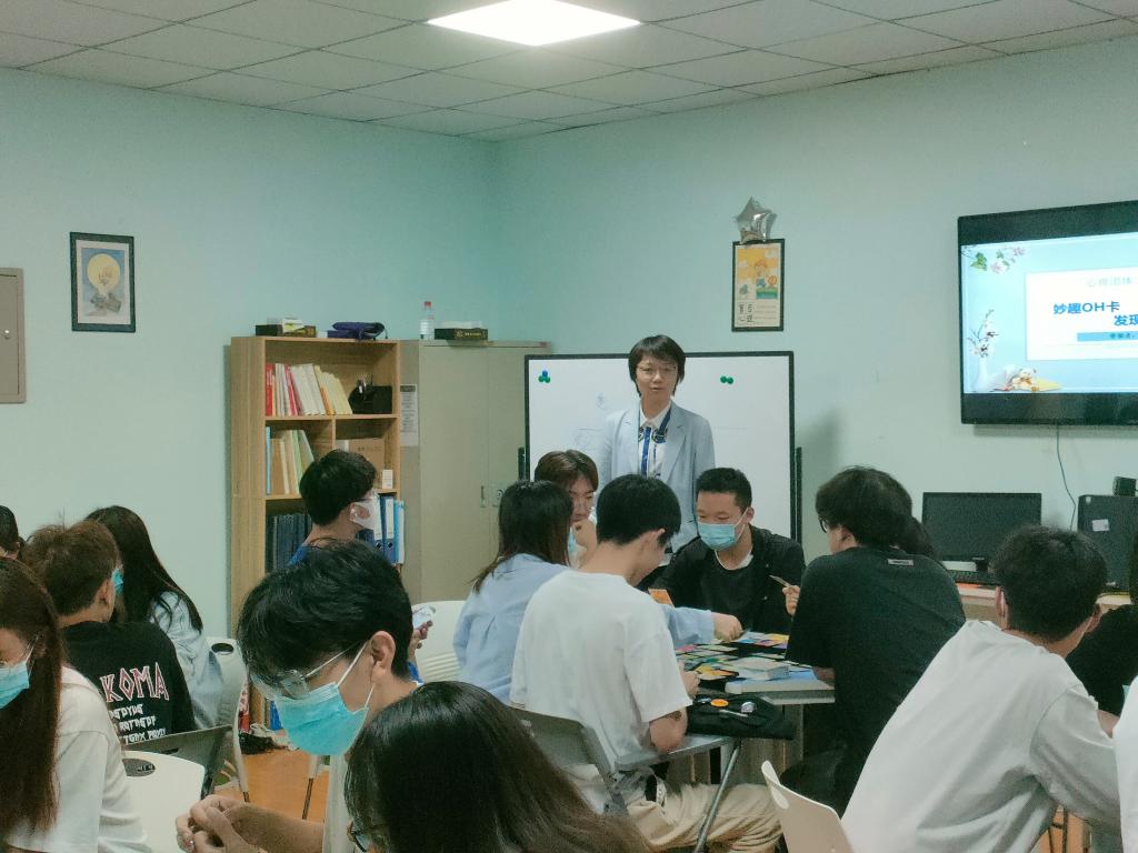 本次活动利用OH卡牌进行,活动通过抽取卡牌,与自己取得联系进行自我介绍;筛选人生中重要的词语;随机选卡牌与字体对应,说出自己的理由等方式,刘蓉老师引导同学们更加了解自己,认识到人与人之间的个体差异。此次活动的进行,帮助同学们发现独特的自我、正确认识自我,从而更好的成长。