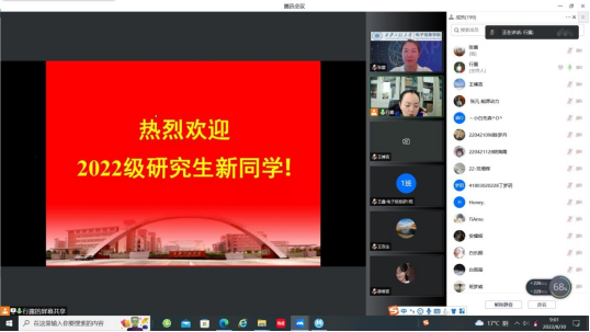 为了帮助新生更快融入电信学院大家庭,开辟人生的新征程,2022年8月30日上午9:00,电信学院通过腾讯会议平台召开了2022级全体研究生大会,安排新学期开学相关事项。电信学院副院长张蕾、党委副书记周晓惠、研究生工作秘书行露、研究生辅导员周梦宇参加了此次会议。本次会议由行露主持。
