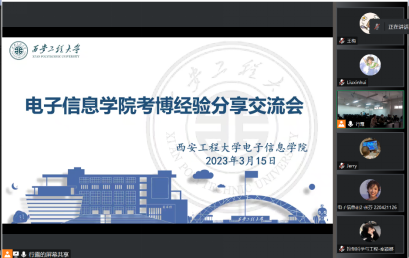 为了提高我院硕士研究生考博的积极性,明确考博目标,对考博有一个更全面、更具体的规划,2023年3月15日下午14时,电子信息学院在电信楼419学术报告厅举办了线上、线下相结合的“考博研究生经验交流分享会”,2021级及2022级研究生100余人参加了此次交流会。会议由研究生秘书行露老师主持,邀请了目前攻读博士的优秀硕士毕业生刘新慧、杜超凡、王华珂三位同学为大家分享经验。