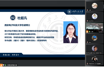 西安电子科技大学在读博士杜超凡为同学们讲述了自己求学的心路历程,就如何选择学校、专业等问题提出自己的看法。同时强调同学们要有相应的科研素养,鼓励同学们思考在面对一个问题时是否有创新能力、创新意识,希望同学们积极学习,拥有自己的思想态度,积极面对未来的道路。