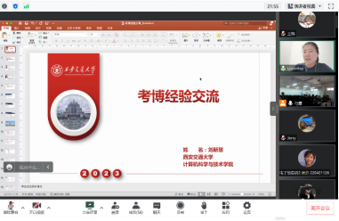 西安交通大学的在读博士刘新慧分享了她备考的经验,包括择校、联系导师以及签证等方面,包括出国学习的各方面可能遇到的情况,进行了详细的介绍,分享了在读研期间的学术规划以及科研经验,并全面了解研究前沿动态。师姐嘱咐各位同学应及时关注报考学校的相关信息,强调提前了解报考导师招生情况十分必要,要注意所报考导师的研究方向与自己的兴趣点是否契合,同时为同学们示范了应对如何查询相关信息。