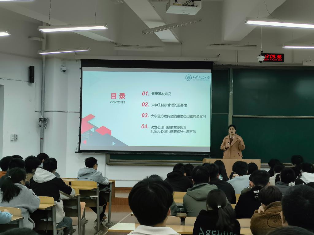 周晓惠结合自身多年工作经历,以典型学生工作案例切入,用“身边故事讲身边理”引发了同学们的思考与共鸣,她主要从心理健康的内涵和意蕴、大学生心理健康管理的重要性、大学生心理健康问题的主要类型、常见大学生心理健康问题及应对策略等方面对大学生心理健康教育管理这一主题进行了解读与分享,帮助同学们掌握了“五快”“三良好”健康评估八大标准等心理健康知识,引导同学们要以“阳光心灵”为自己护航,以“感恩奋进”回馈国家社会,为同学们更好的“上好学、学好业、做好人、成好才”注入了智慧力量。