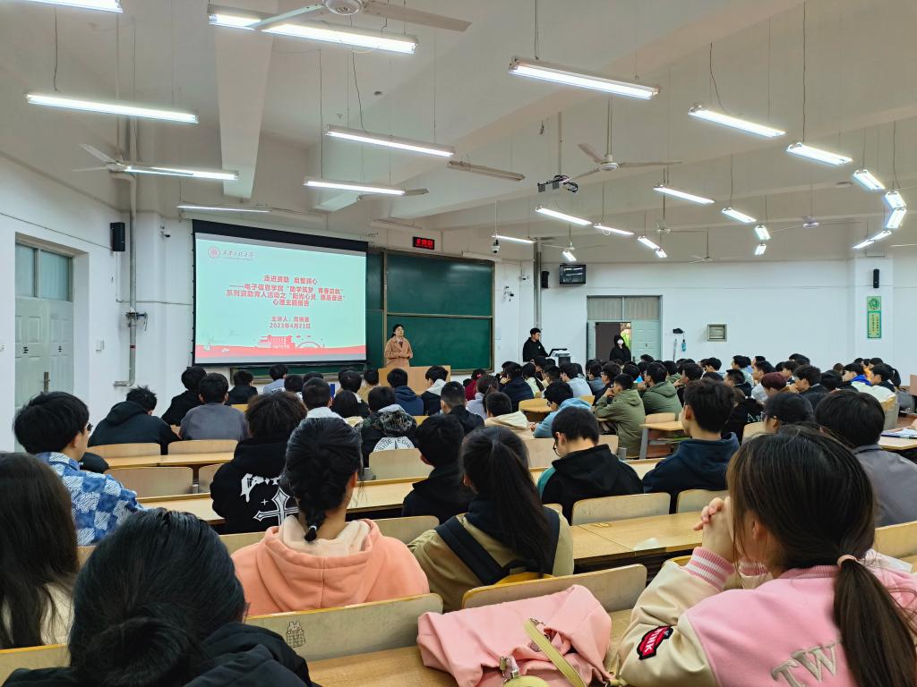 4月23日中午,电子信息学院党委副书记周晓惠为近200名的家庭经济困难学生作了题为《大学生心理健康教育管理》主题报告,以精彩纷呈、干货满满的讲授拉开了学院本学期“助学筑梦 青春启航”系列资助育人活动的序幕。