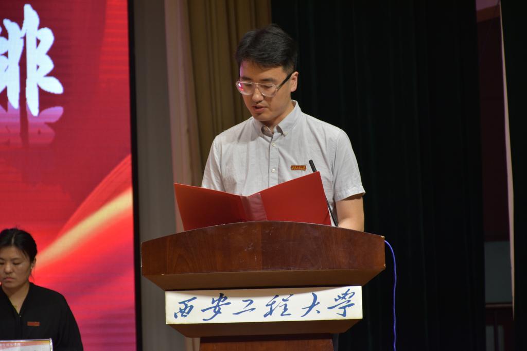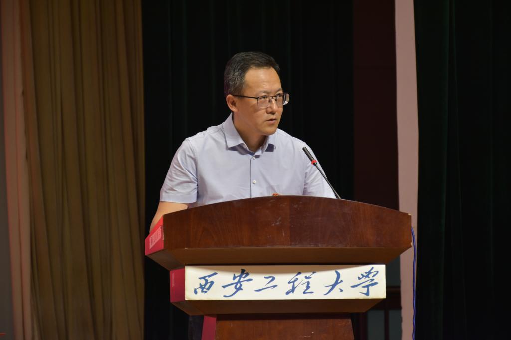 大会第四项,教师代表李珣教授发言。他代表全体教师向新生表示热烈的欢迎,并鼓励同学们做到“仁、义、礼、智、信”,努力成为专业素质过硬、品质优良的优秀大学生。