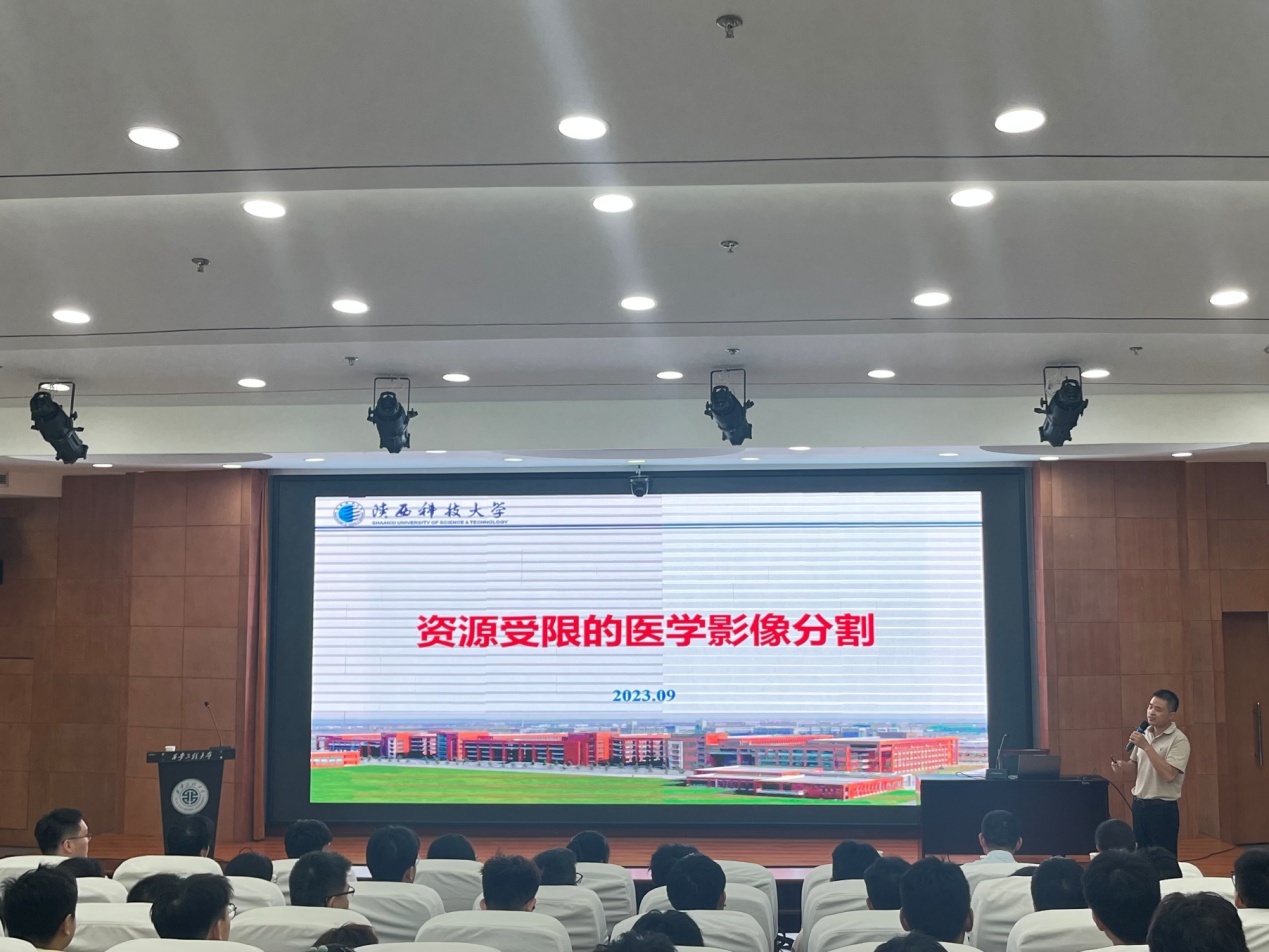 2023年9月14日下午4:00,西安工程大学第四期经纬学术沙龙在临潼校区图书馆一层报告厅举行。本次活动由电子信息学院承办,邀请了陕西科技大学人工智能学院副院长雷涛教授作了主题为《资源受限的医学影像分割》的报告。电信学院副院长张蕾教授、电子信息学院青年教师、研究生两百余人参加了本次学术交流活动。